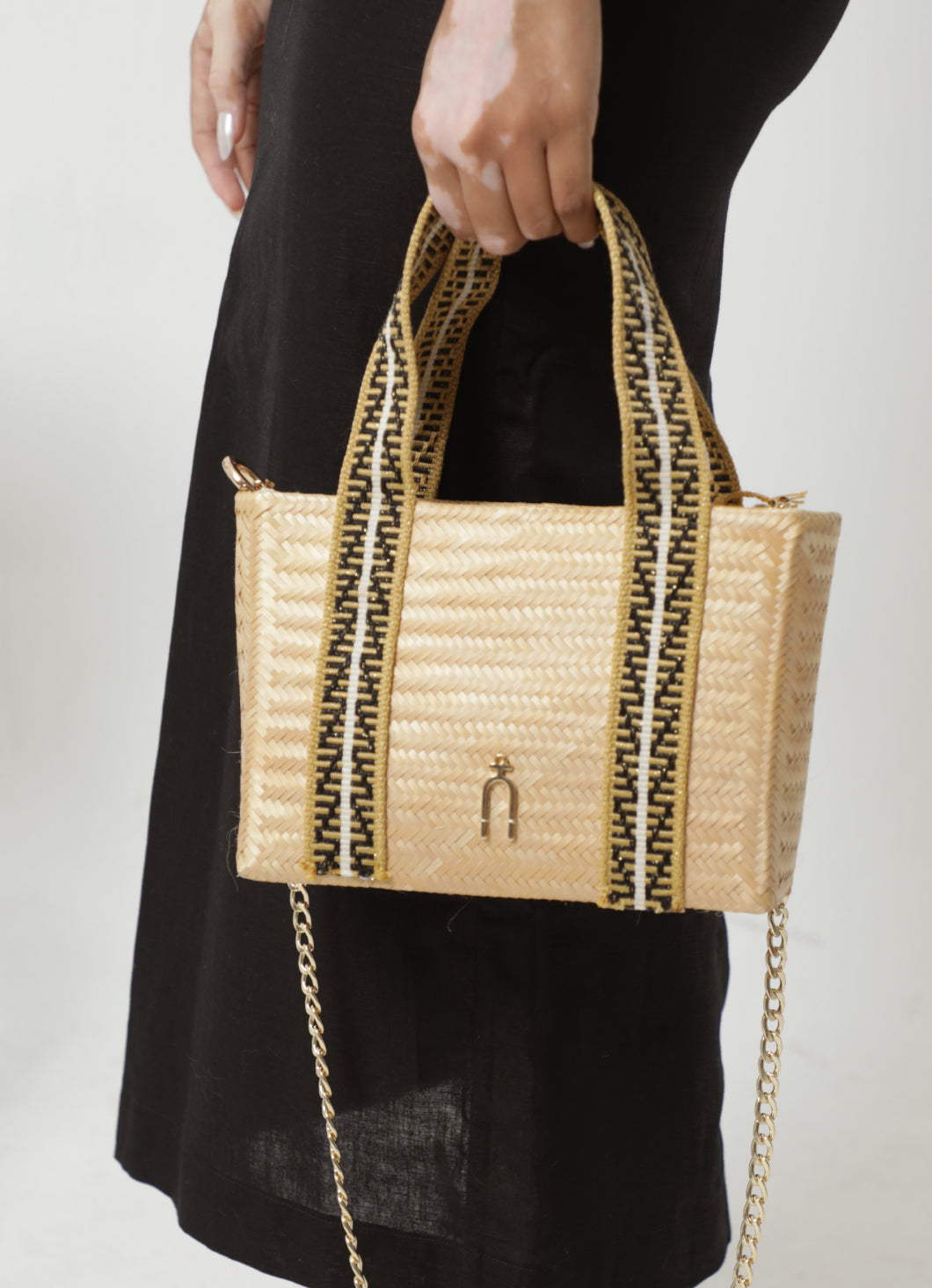 Bolso perfectamente elaborado en palma, con detalles en gaza paleteada una técnica ancestral wayuu, sus tonos tierra lo convierten en un bolso atemporal y que no pasa de moda, incluye llavero que puedes agregar o quitar en el momento que desees.