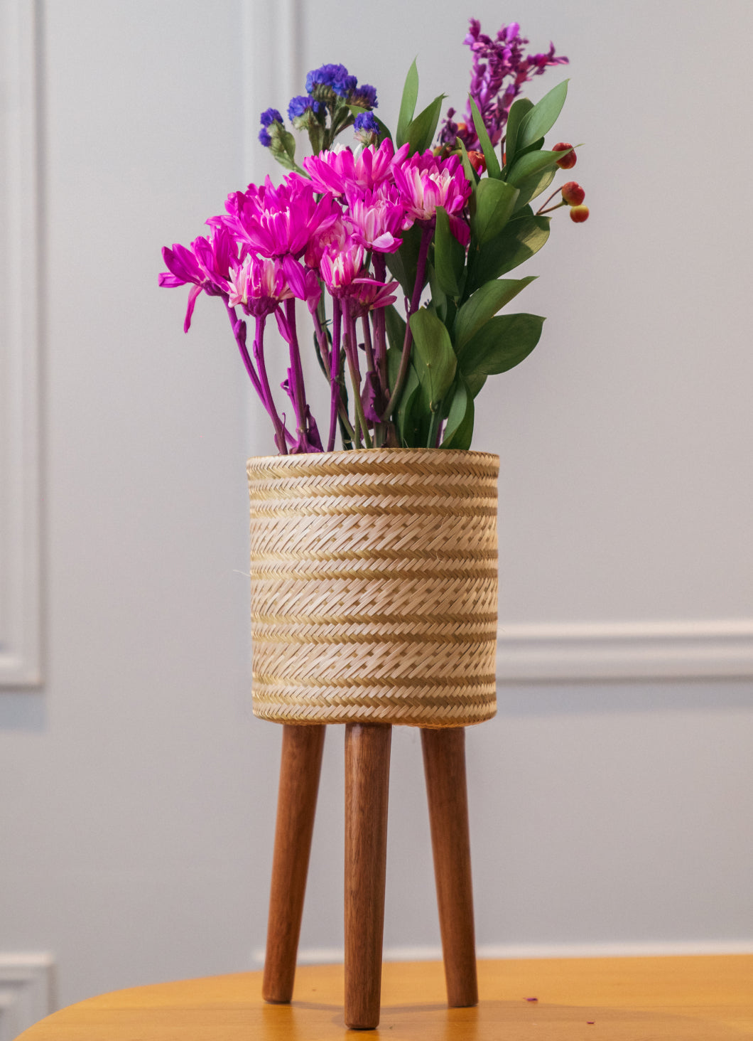 Un perfecto complemento para tus espacios interiores o exteriores, nuestras macetas en pausayu home están elaboradas con técnicas ancestrales combinando la madera y palma, elevando lo artesanal en arte para acompañarte cualquier espacio de tu hogar, este articulo fue elaborado por artesanos indígenas wayuu.